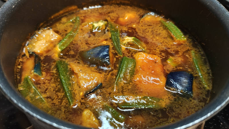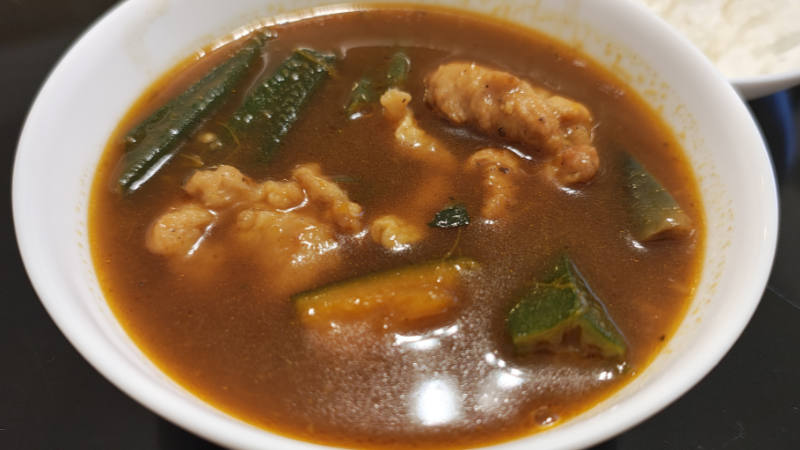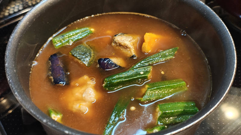具材は、鶏肉・茄子・オクラ・かぼちゃ