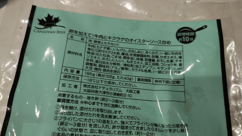 - 商品名:卵を加えて! 牛肉とキクラゲのオイスターソース炒め