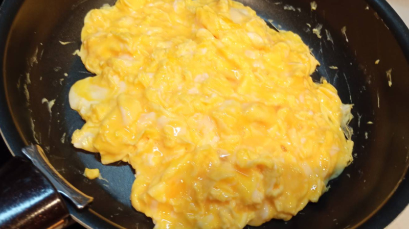 次にセット1袋につき卵2〜3個使用してフライパンで炒めていきます。