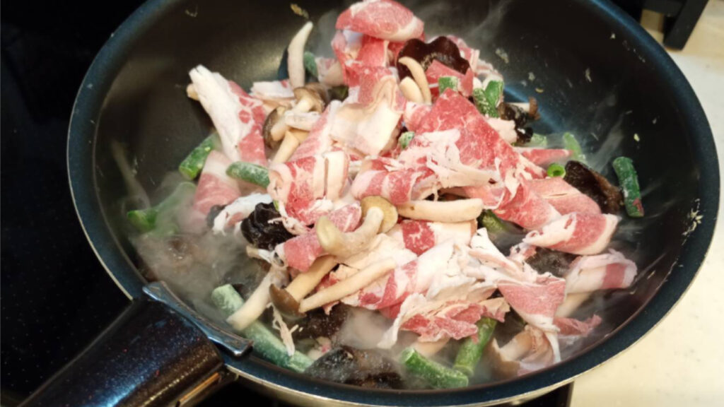 セットには、牛肉・いんげん・ぶなしめじ・キクラゲの具材と