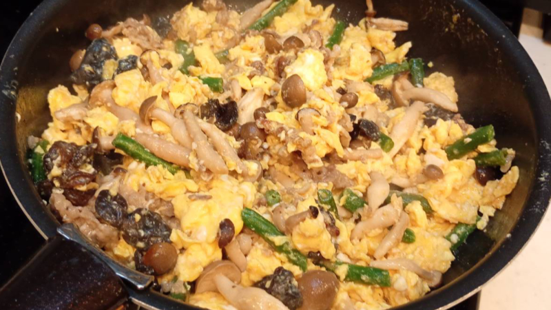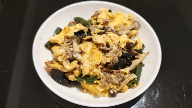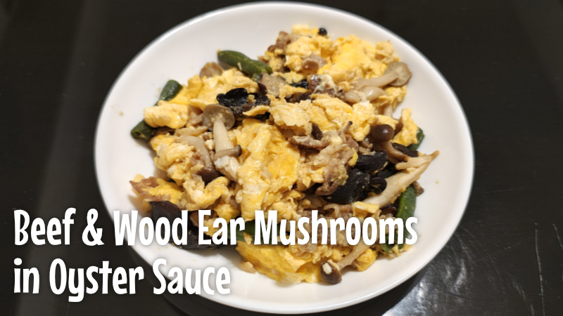 卵を加えて! 牛肉とキクラゲのオイスターソース炒め