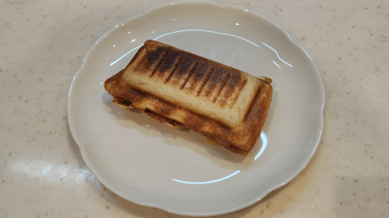 完成したホットサンドは電子レンジで調理したとは思えないほど