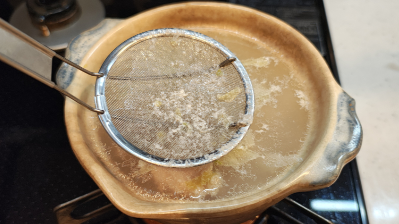 その際、アクが出てくる場合があるので可能であればアク取りをしておきましょう。