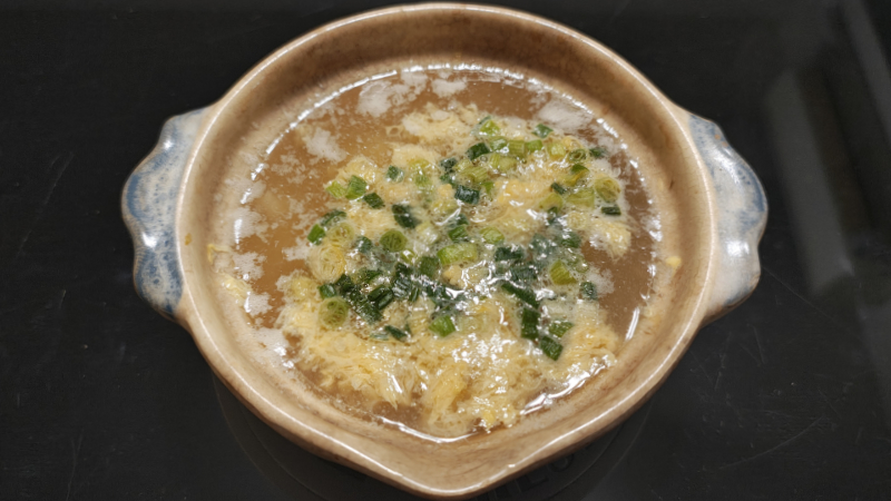その間に、卵を溶いて乾燥ネギも加えて用意しておきます。