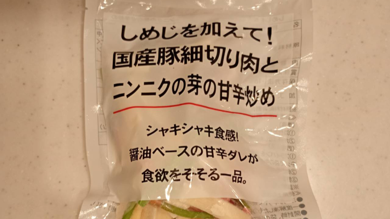 今回は「しめじを加えて! 国産豚細切り肉とニンニクの芽の甘辛炒め」を作りました。