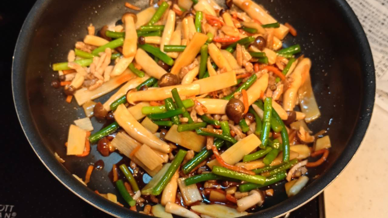 ニンニクの芽やたけのこのシャキシャキ・コリコリした食感の良さが際立って