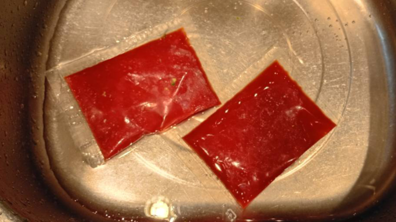 冷凍状態のトマトソースを解凍していきましょう。