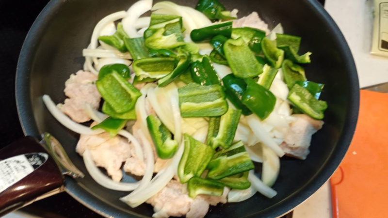 今回は、玉ねぎの他にピーマンも追加しました。