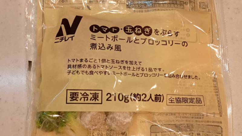 - 商品名:トマト・玉ねぎをぷらす ミートボールとブロッコリーの煮込み風