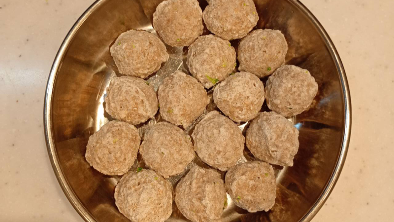 最初に炒め始めるミートボールだけ取り出しておきましょう。