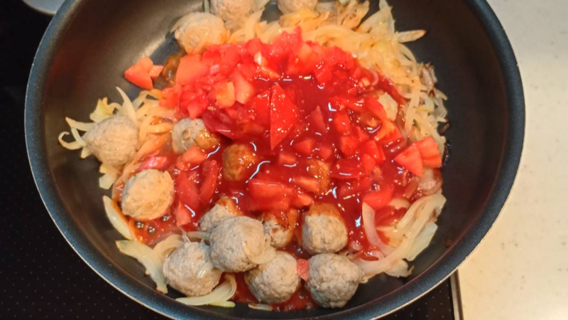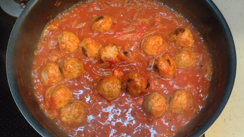 ミートボールの凍っているところがなくほんのり焼色が付いてきたらOKです。